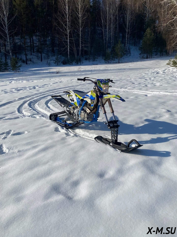 Folk 121 от Snowbike — универсальный гусеничный комплект для внедорожных мотоциклов. Гусеничный мотоцикл (СНОУБАЙК) это, по сути, одноколейный снегоход. Вы получаете возможность продлить мото сезон и эксплуатировать мотоцикл не только летом но и зимой.